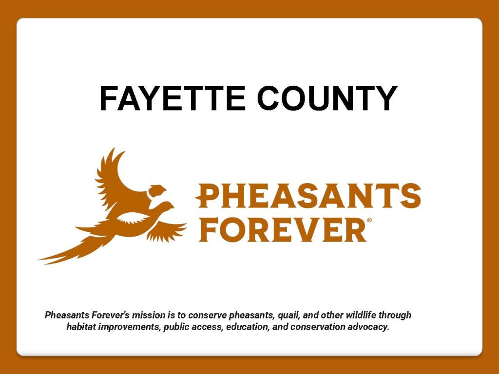 Fayette County Pheasants Forever was recognized at the 2024 Iowa Pheasants Forever Convention for exceeding $4,342,000 in habitat expenditures since its founding in 1985 and was honored at the 2024 National Pheasants Fest as the Chapter of the Year for Habitat!